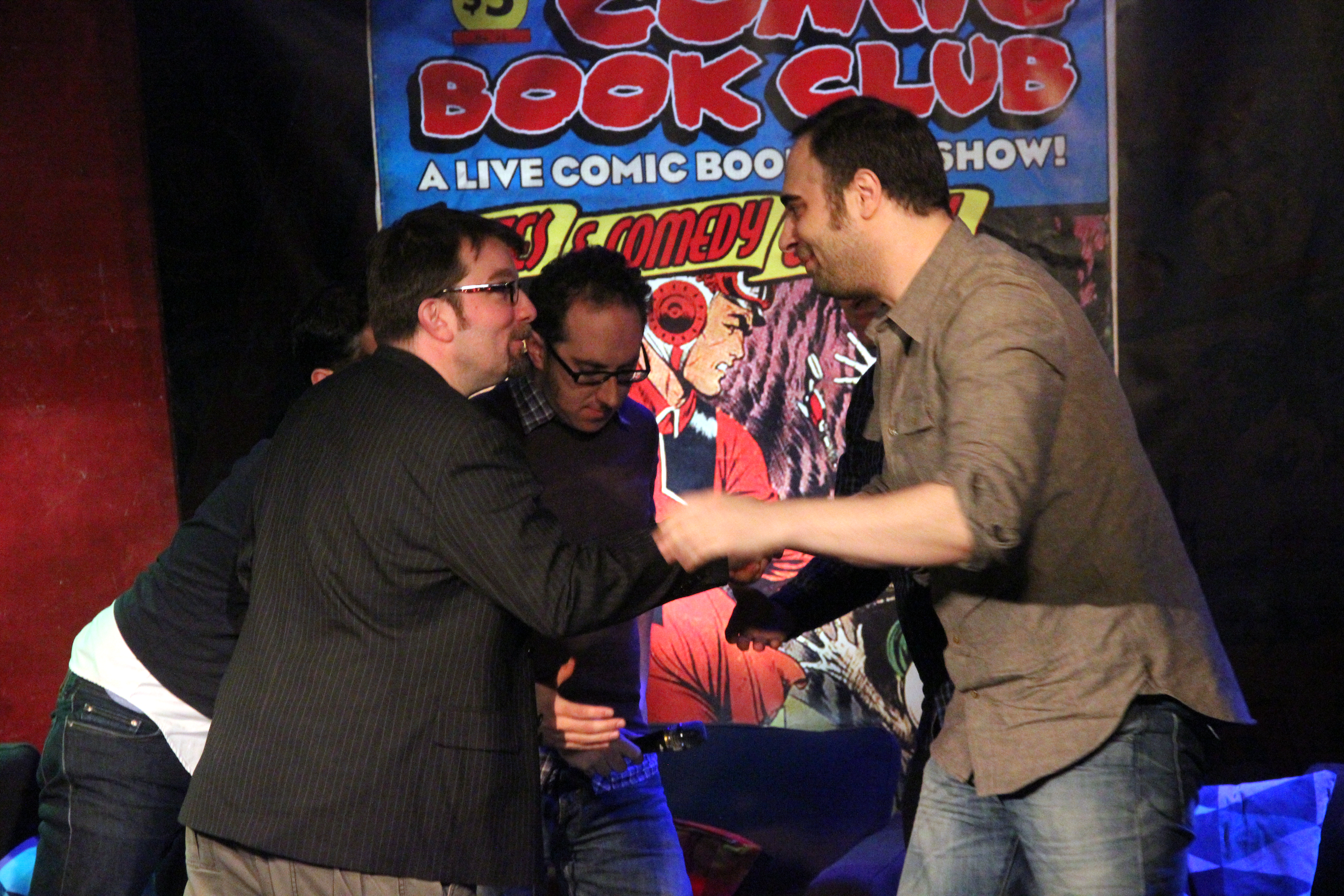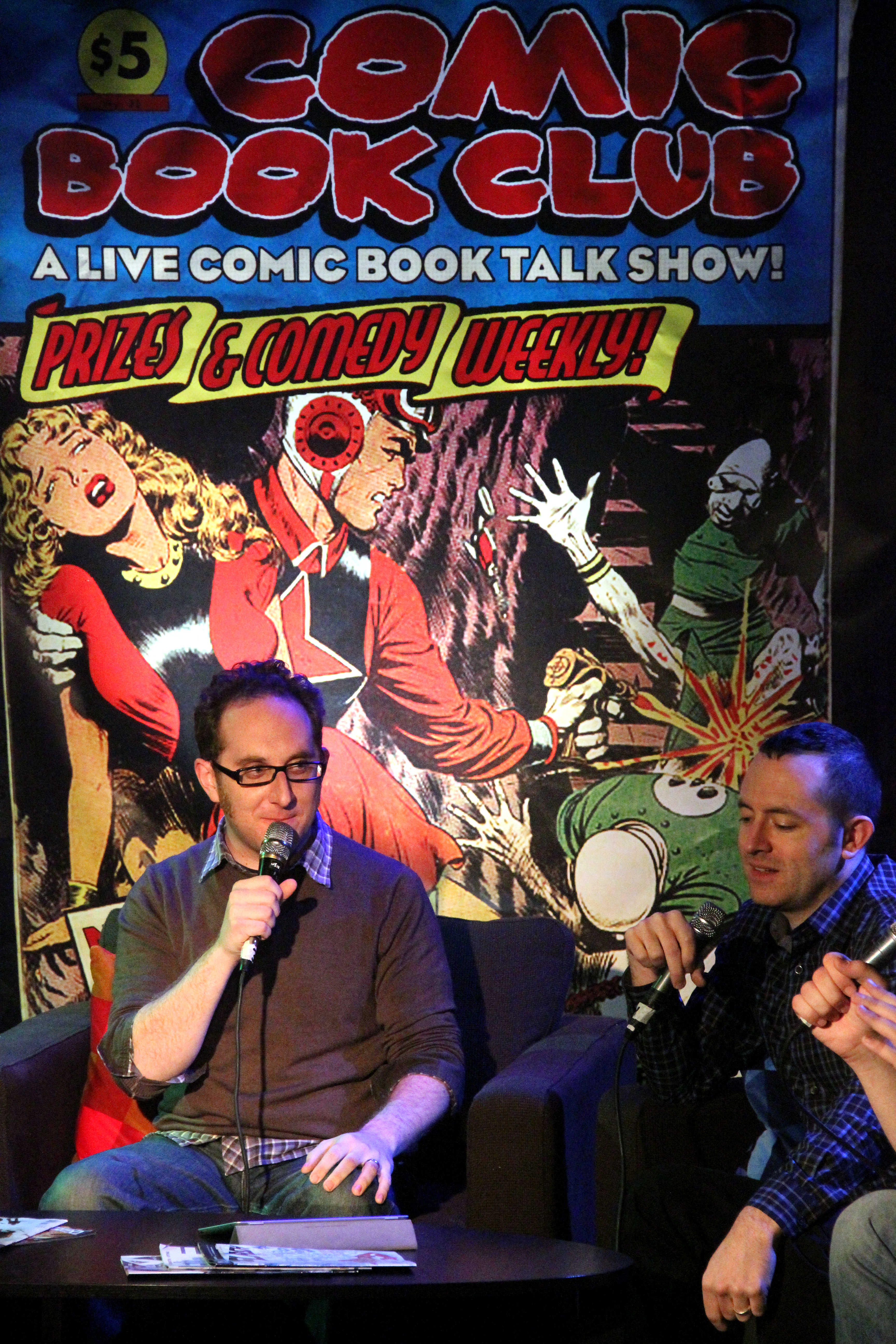 Video too intense for you? Hate to listen to stuff? Then luckily, starting this week we’ll be adding a gallery of photos from each show, taken by Broadway Video’s awesome Mallory Schwartz. This week, we’ve got a few shots of our show with Ugly Americans’ Devin Clark and Kurt Metzger, so click on through: