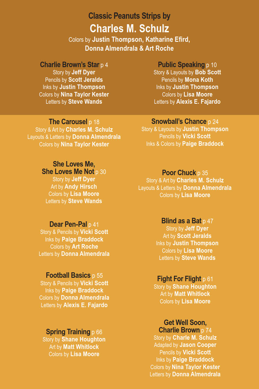 Writers: Charles M. Schulz, Jason Cooper, Jeff Dyer, Bob Scott, Justin Thompson, Vicki Scott, Shane Houghton