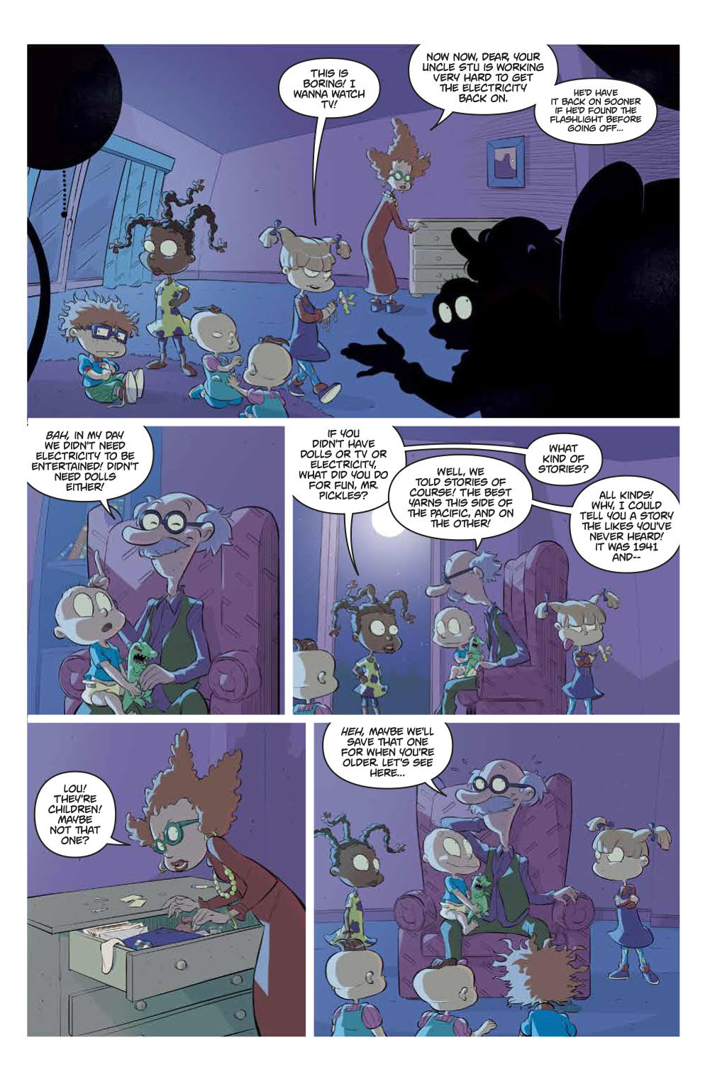 Synopsis: When the power goes out at the Pickles house, the babies and adults come together to share their own personal favorite Reptar stories. This collection includes short stories by Grandpa Lou, Phil & Lil, Angelica Pickles, Susie Carmichael, and Tommy Pickles as they each tell you their own version of Reptar.