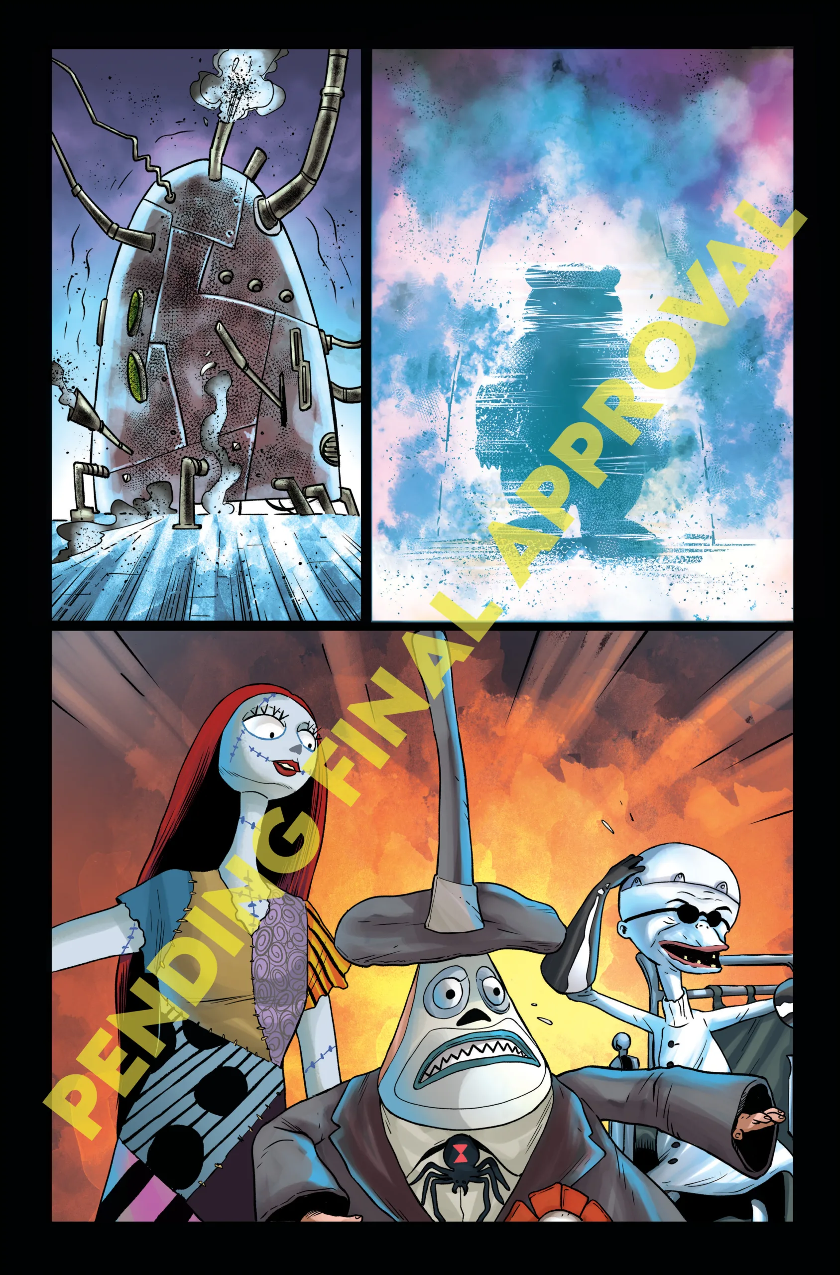 Colors are by Adriano Augusto and letters are by Taylor Esposito. Tim Burton’s The Nightmare Before Christmas: The Shiver of Christmas Town #1 will hit stores in January, featuring covers by Jae Lee, Soo Lee, and Alan Quah. Check out the covers and several unlettered interior pages below!